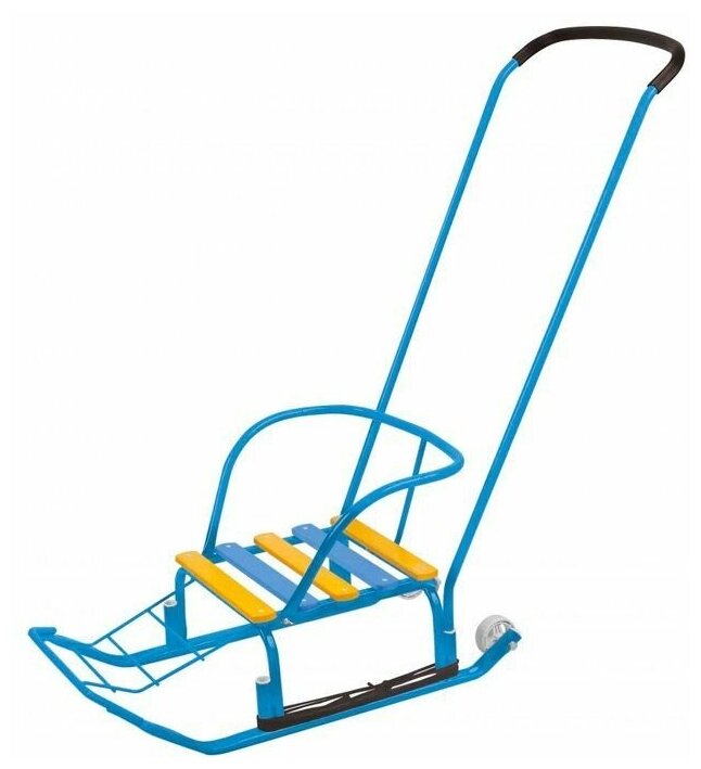 Санки детские с ручкой, спинкой, колесиками и рукавичками Nika "Тимка 3К" (голубой)