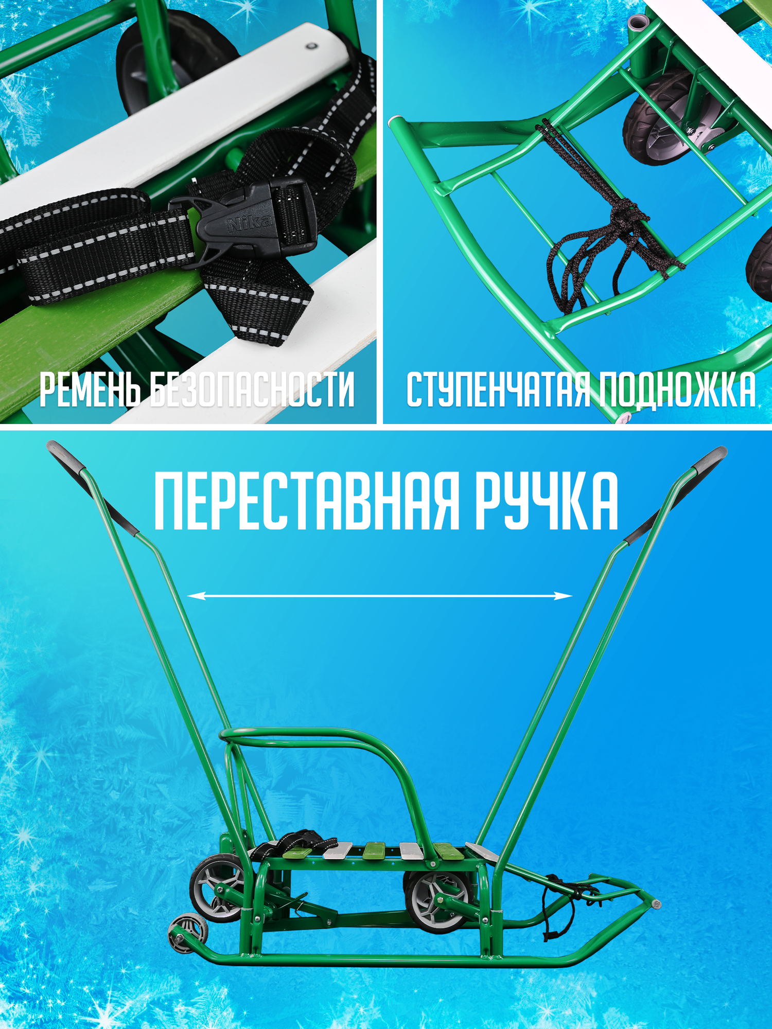 Санки Nika kids "Тимка 5 Универсал" с выдвижными колесами зеленый/белый (Т5У/32з) А