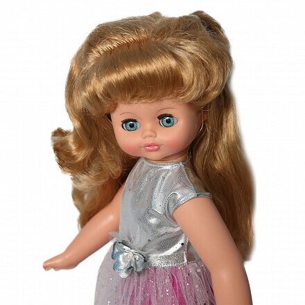 | Комплектация | кукла в одежде (нарядное платье — верх из парчовой ткани, юбка из шёлка и сетки с блёстками, декоративный цветок из парчи по линии талии), туфли |