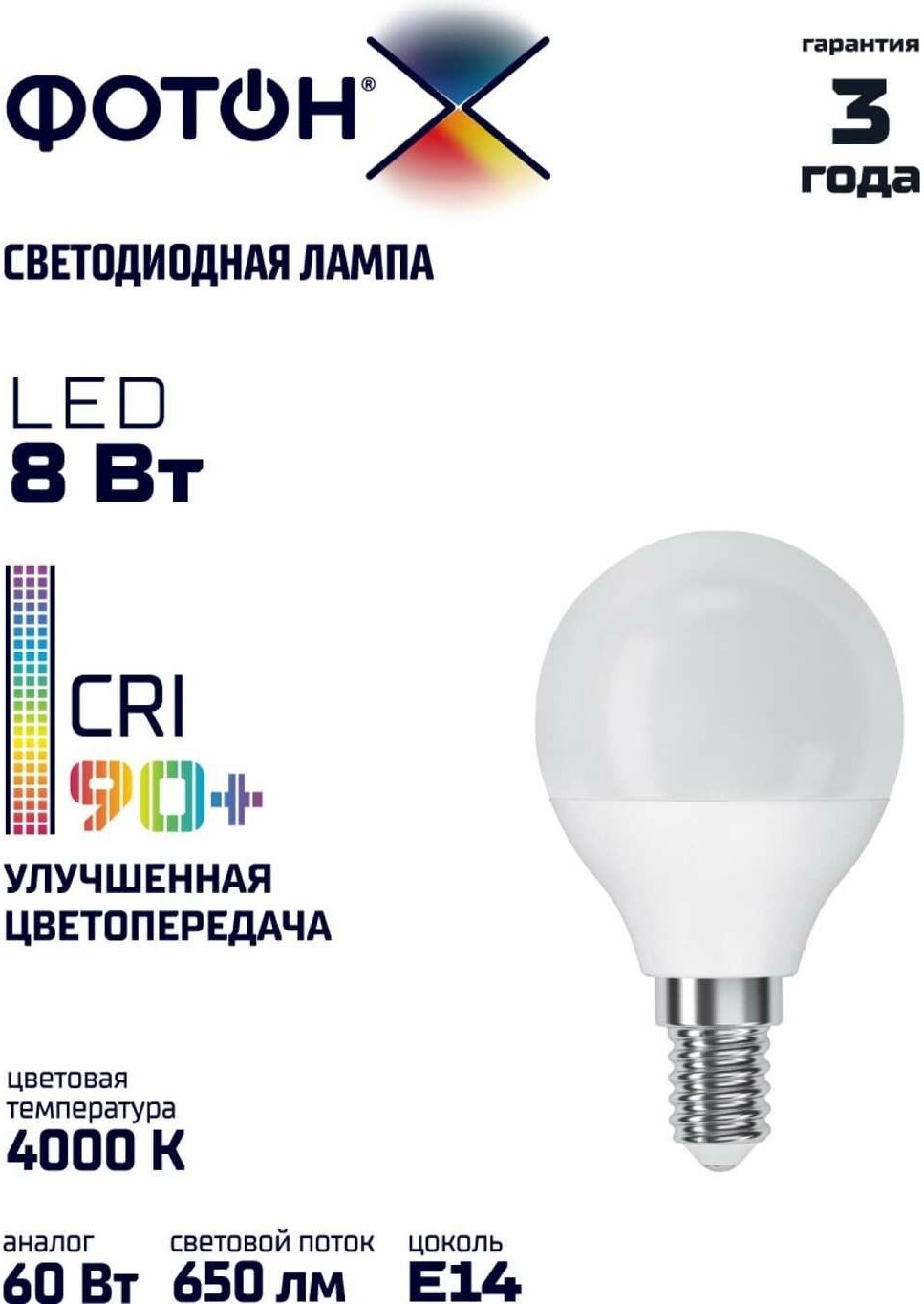 Лампа светодиодная фотон LED P45-C 8W E14 4000K, серия Х интересное: