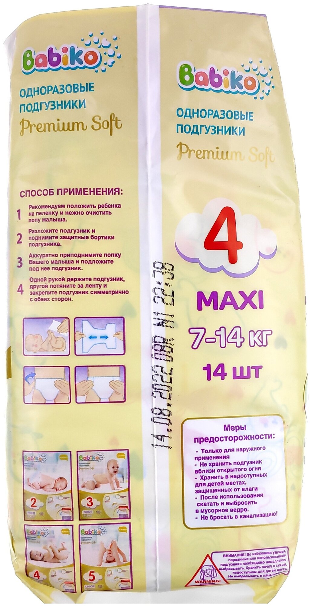 Подгузники Babiko premium Maxi, размер: 4 (7-14кг), 14шт интересное: