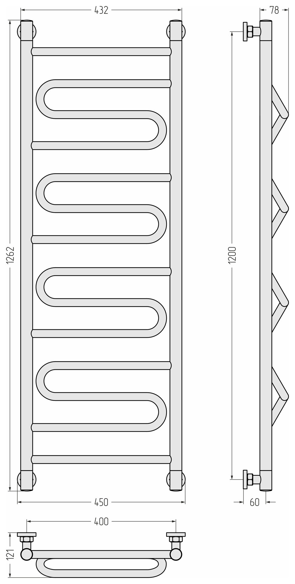 Водяной полотенцесушитель Сунержа Элегия+ 1200x400