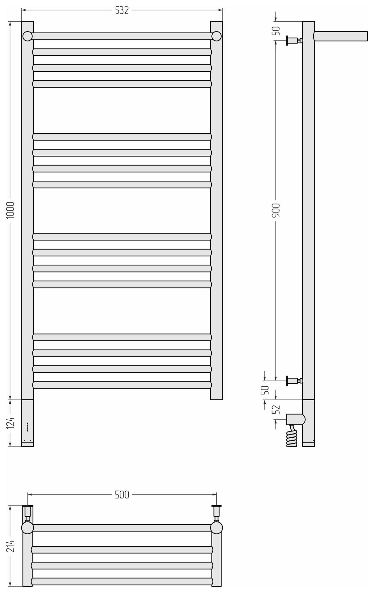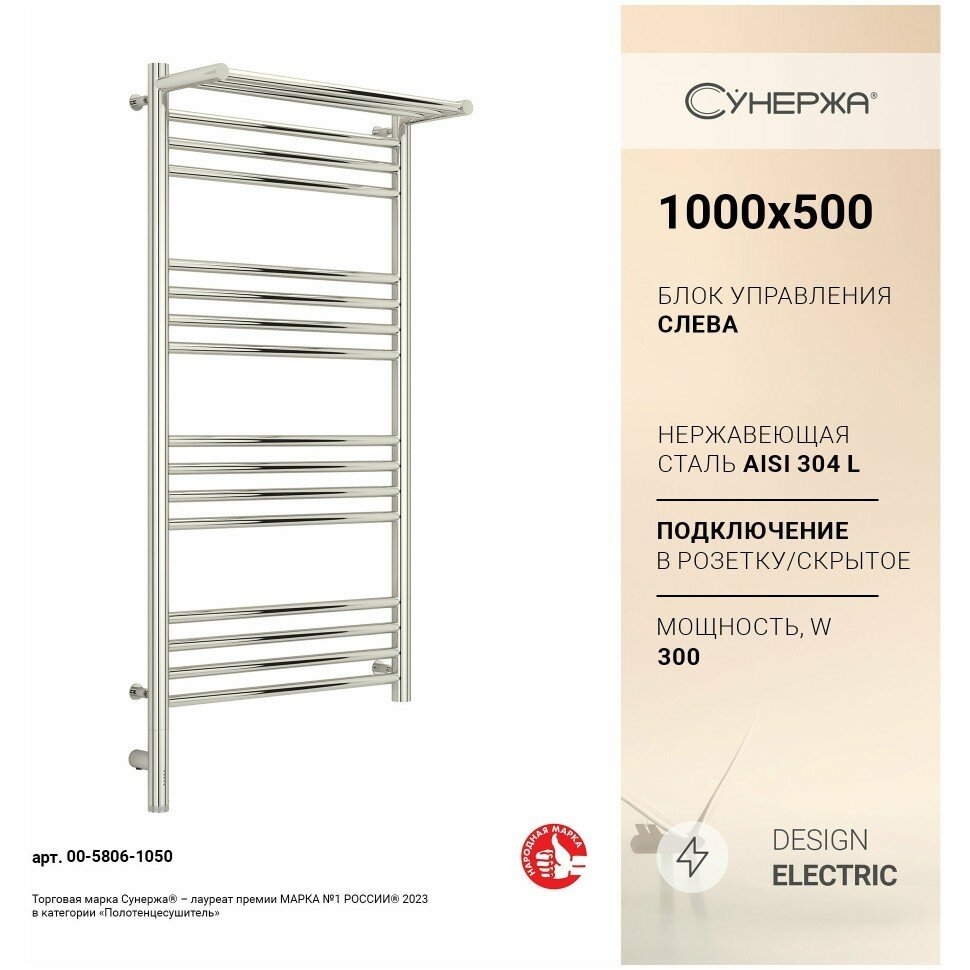 Полотенцесушитель электрический Сунержа Богема с полкой 3.0 1000х500 / МЭМ левый Без покрытия 00-5806-1050