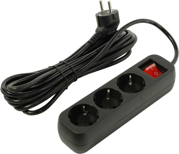 Удлинитель с выключателем Defender S, 5.0 м, 3 розетки, черный
