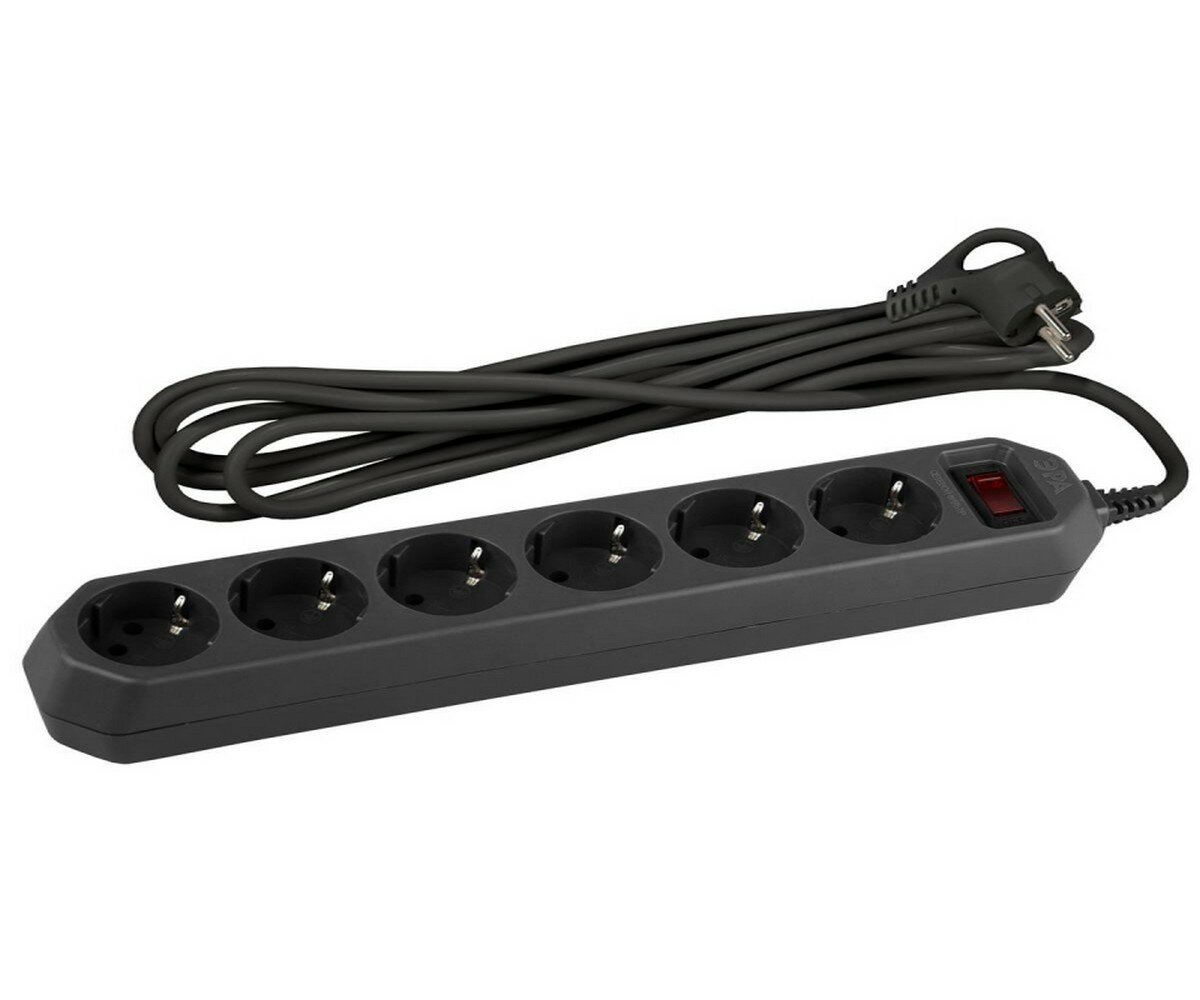 Эра Б0037263 Сетевой фильтр USF-6es-3m-B-BOX базовая защита, с з, с выкл, 6гн, 3м, ПВС, 10А, черный