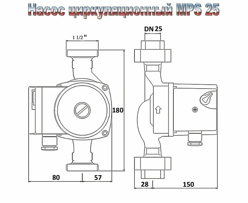 Насос циркуляционный Millennium MPS 25-80 (180мм монтажная длина) с соединительными гайками