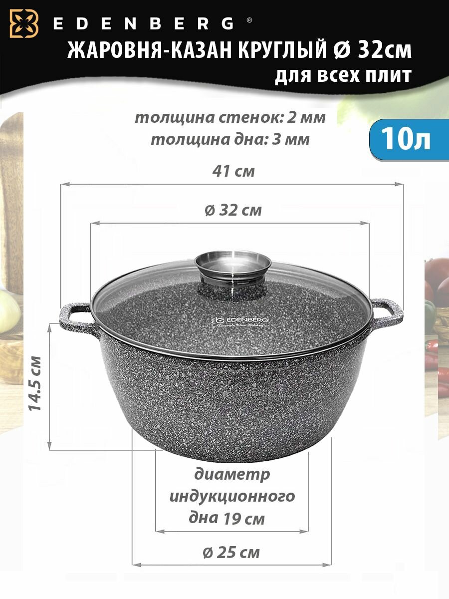 Купить Казан с крышкой Edenberg 10л 32см для всех видов плит / Сотейник / Жаровня / посуда / индукционной / газовой / для готовки / плова / дома / духовки