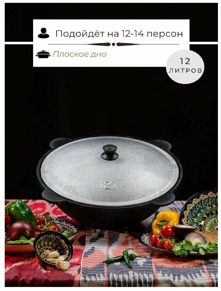 Казан чугунный узбекский наманганский 12 литров с крышкой и плоским дном интересное: