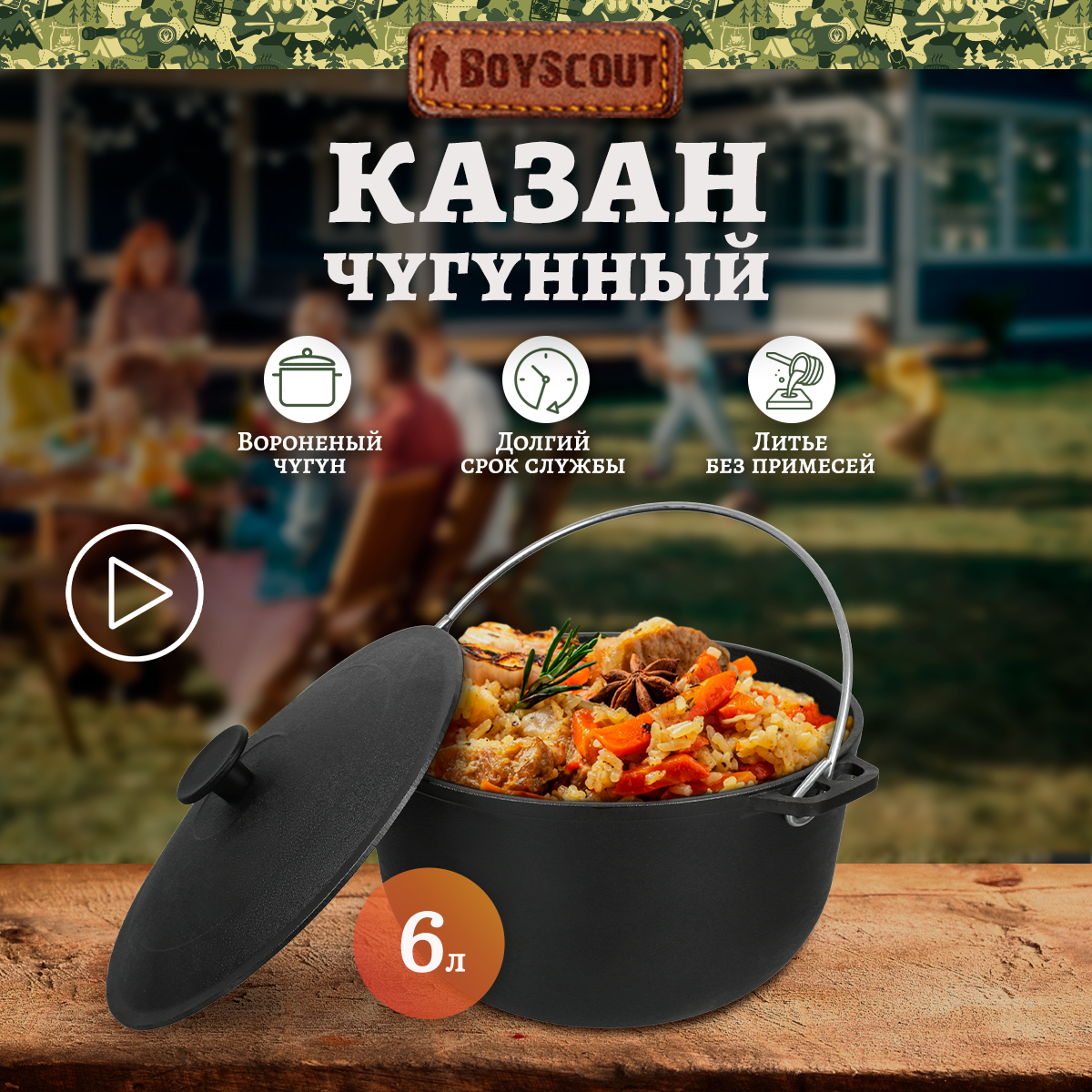 Купить Казан чугунный Boyscout, с крышкой, 6 л