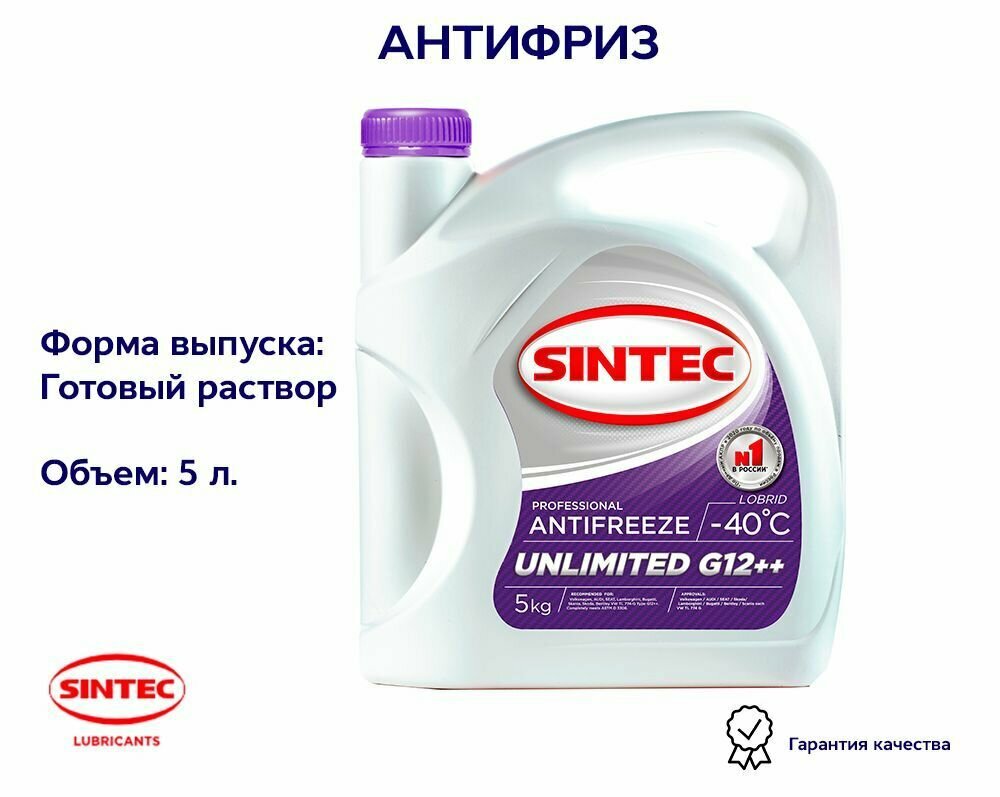 Купить Антифриз G12++ Sintec Unlimited Готовый Vag Tl-774G 5Кг -40°С Фиолетовый SINTEC арт. 803584