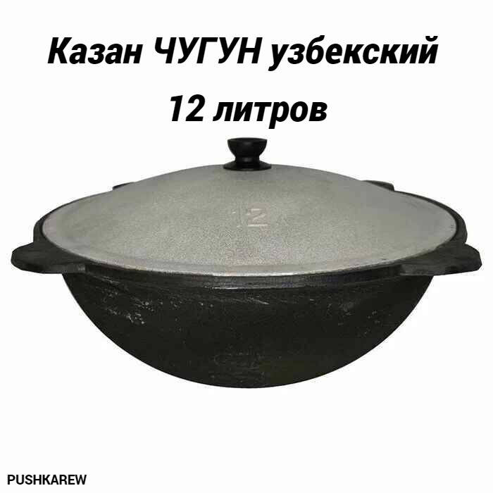 Узбекский чугунный казан 12 л (плоское дно) с крышкой интересное: