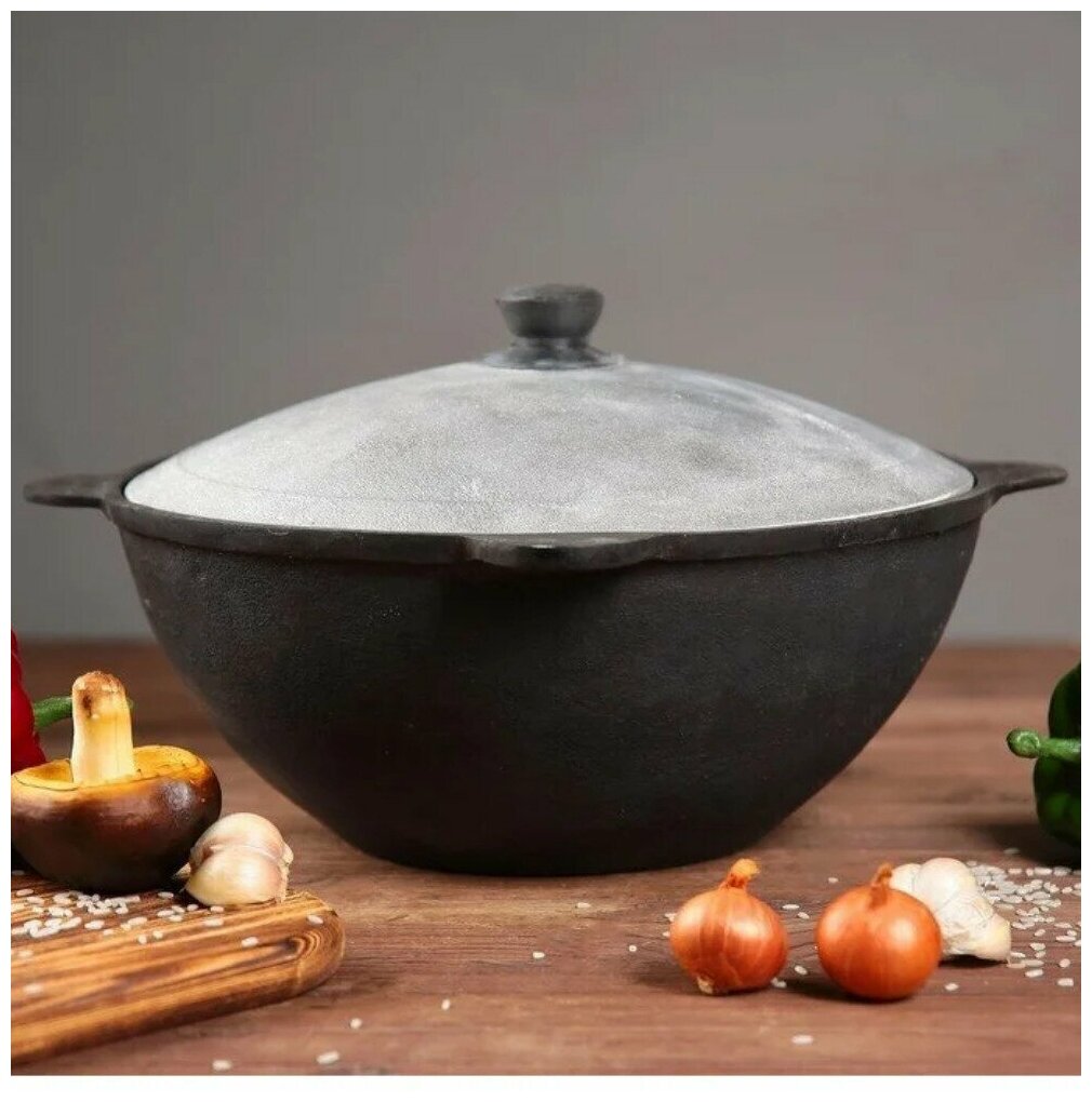 Казан чугунный, узбекский, Наманганский с крышкой. Казан для плова 10 литров. интересное: