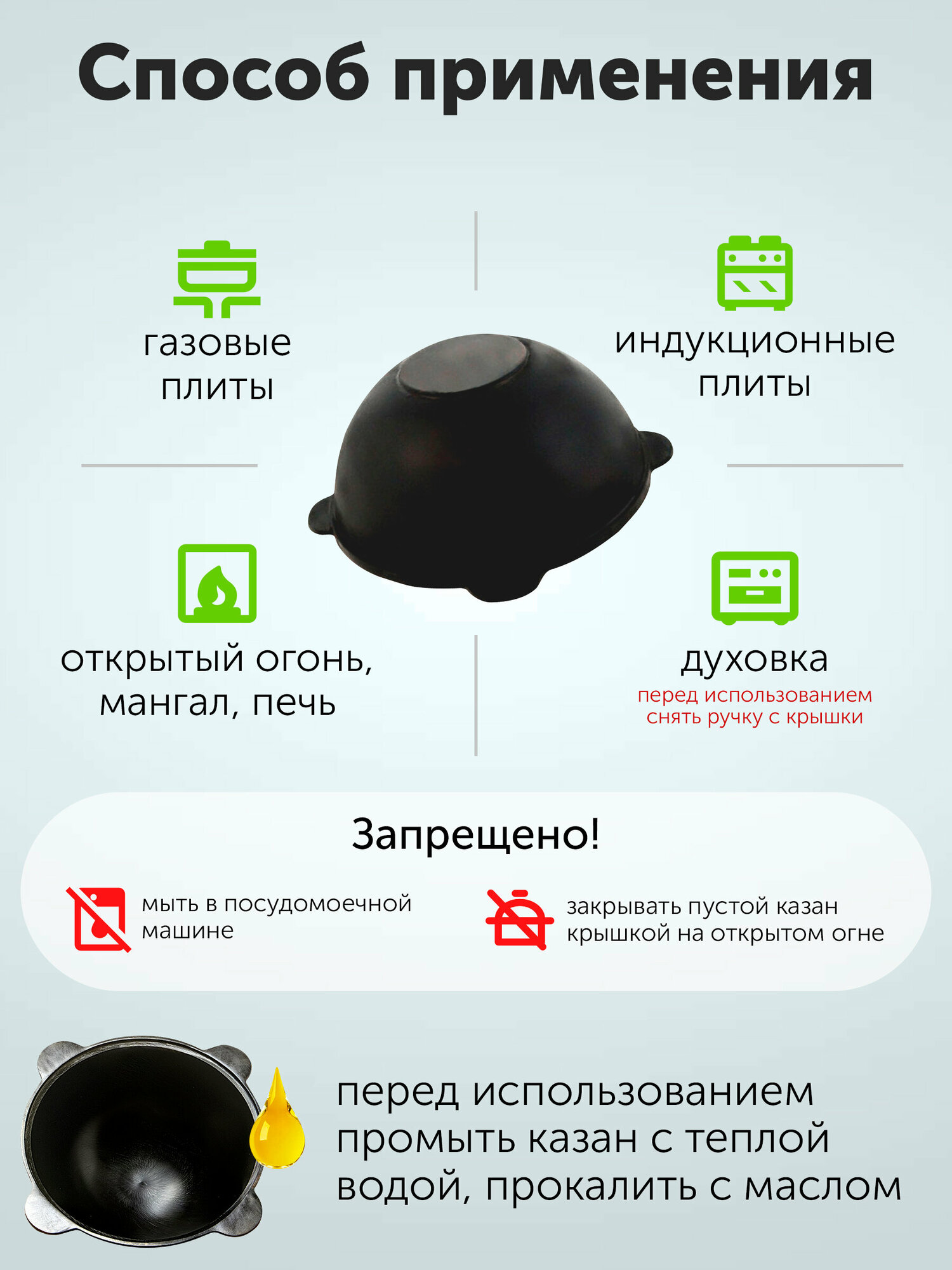 | Плюсы: | Отличный чугунный казан, плов отменный! |