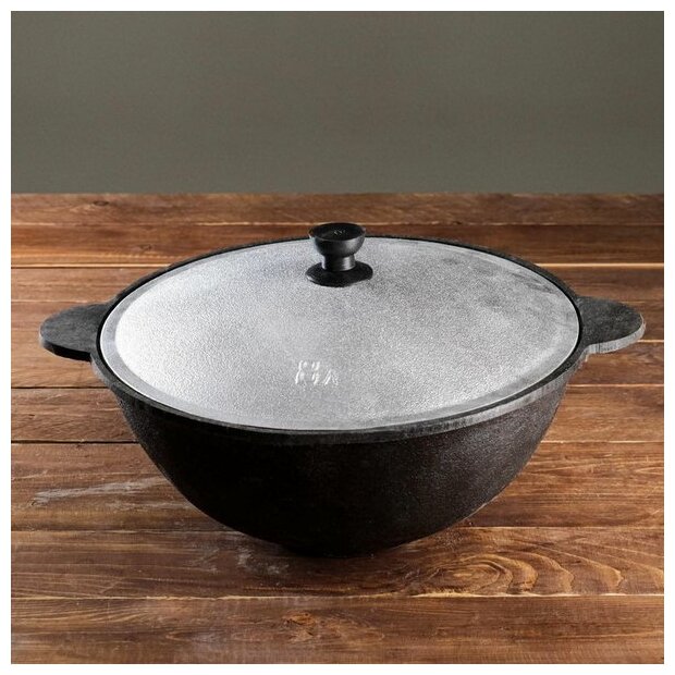 Казан чугунный, 8 л, плоское дно, алюминиевая крышка интересное: