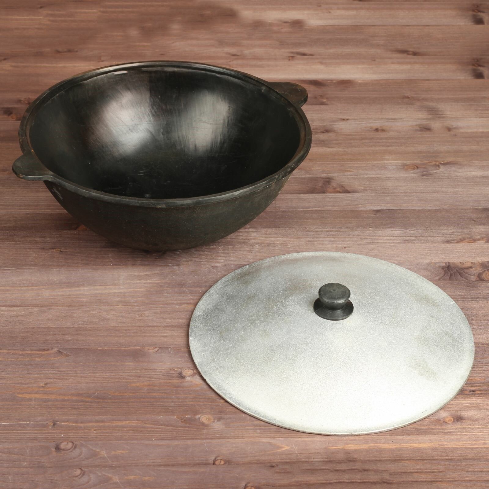 Казан чугунный, 8 л, круглое дно, алюминиевая крышка 2733163 .