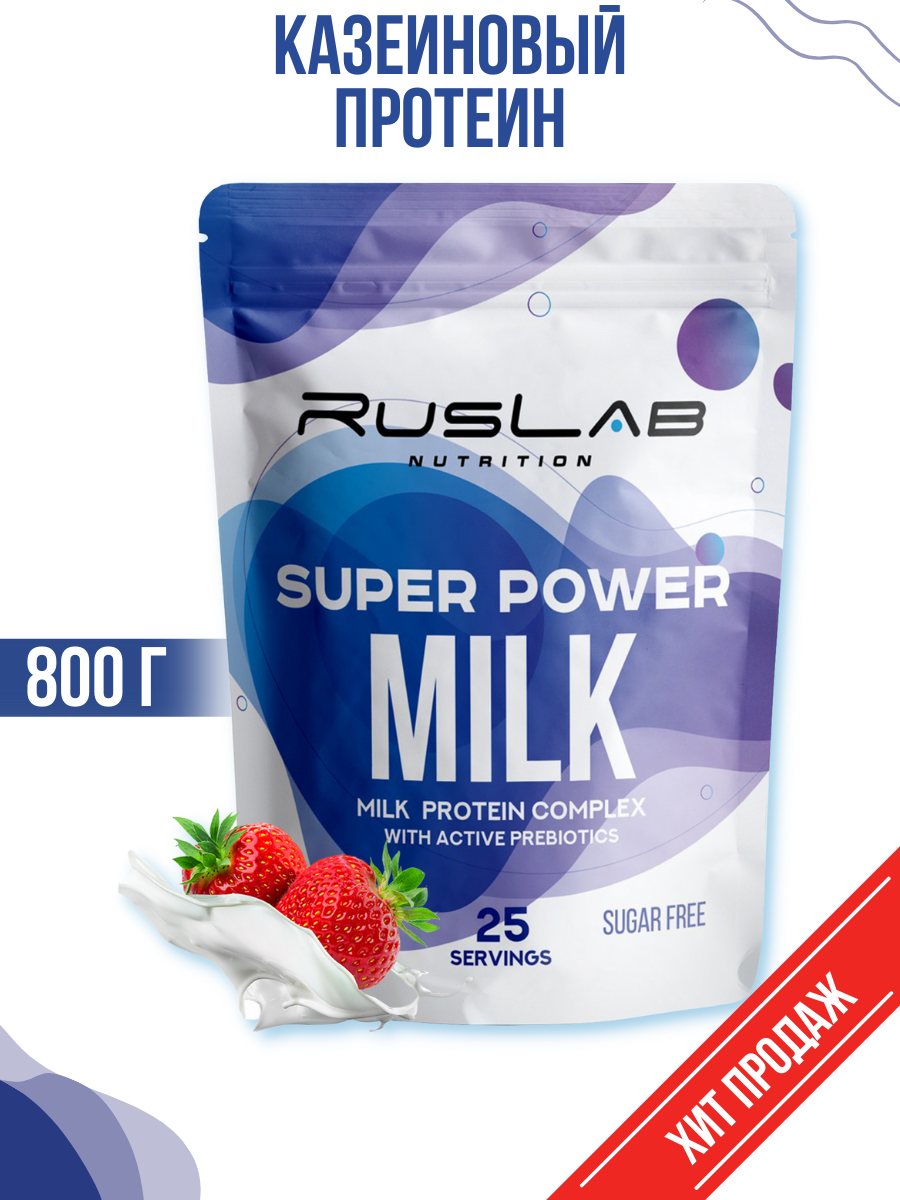 Казеиновый протеин SUPER POWER MILK, белковый коктейль (800 гр), вкус клубника со сливками