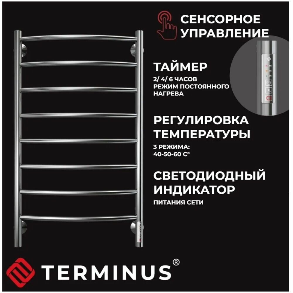 Полотенцесушитель электрический левый TERMINUS (Терминус) Классик П8 400х850мм, нержавеющая сталь, диммер,таймер, гарантия 5 лет