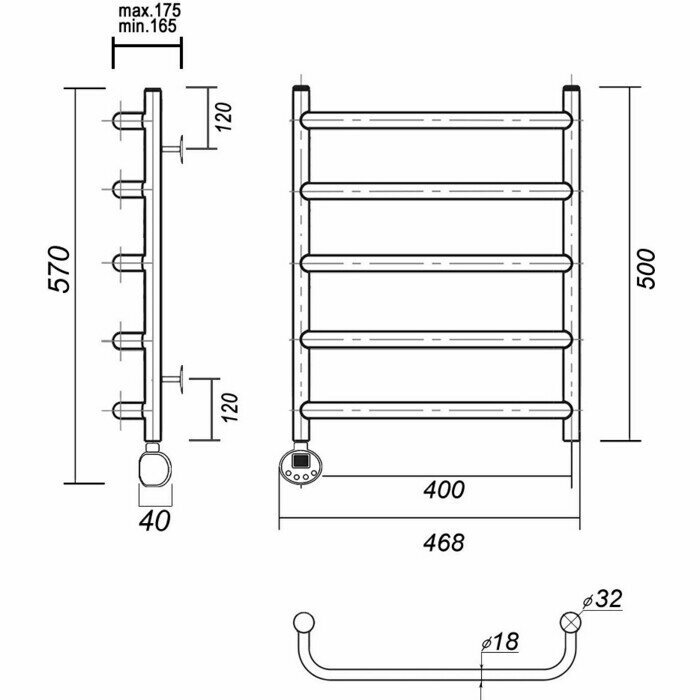Полотенцесушитель Электрический Тругор Пэк сп 5 П 60х50 черный ВГП