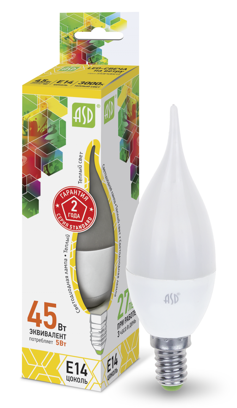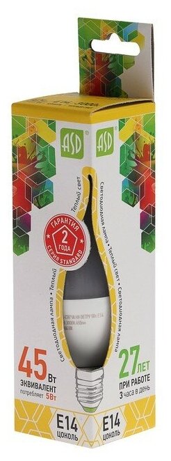 Лампа светодиодная ASD led-свеча на ветру-standard, Е14, 5 Вт, 230 В, 3000 К, 450 Лм интересное: