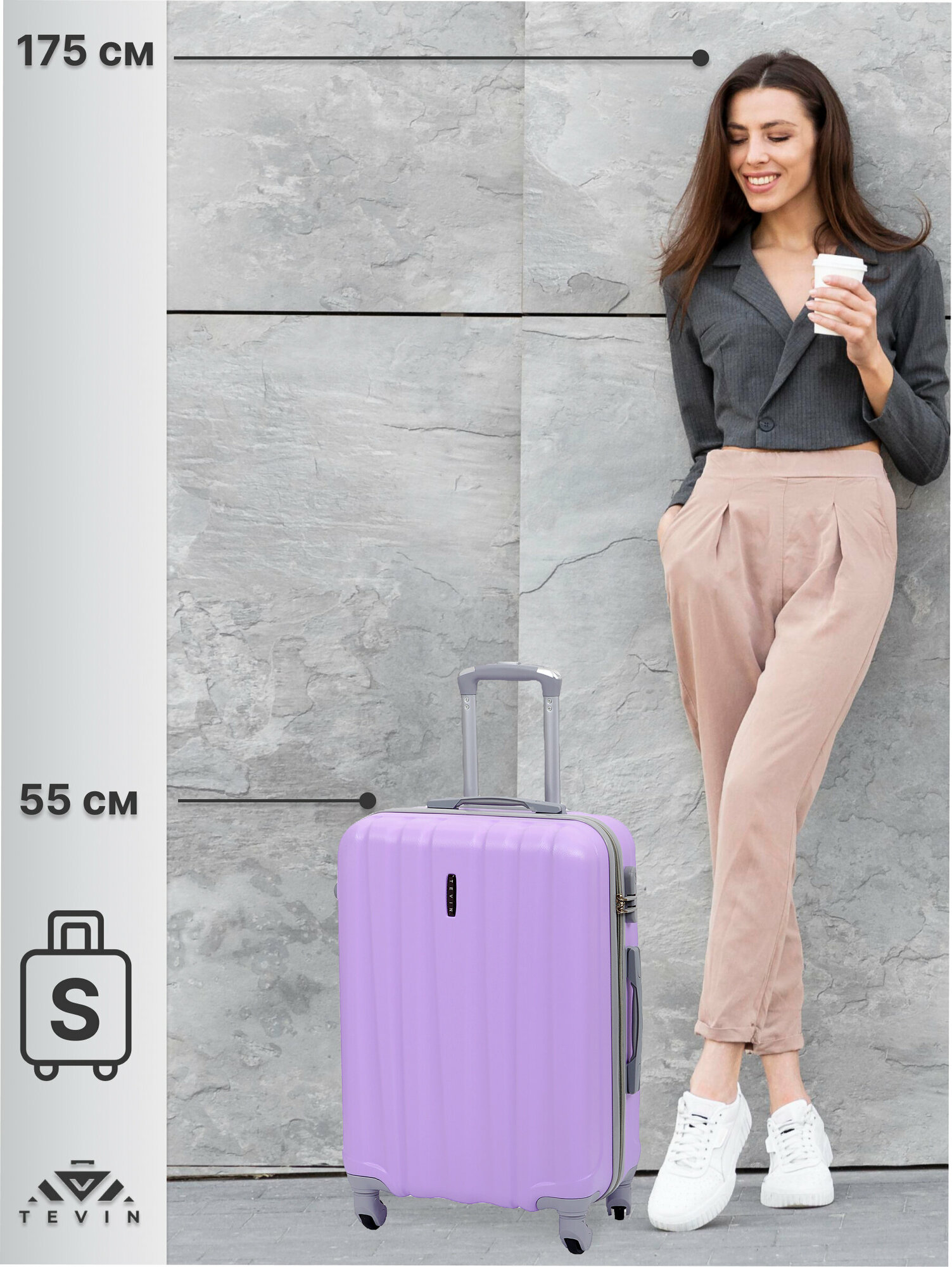 Чемодан на колесах дорожный ручная кладь в самолет s TEVIN размер С небольшой 55 см ручной 37 л легкий 2.5 кг прочный abs пластик Фиолетовый нежный