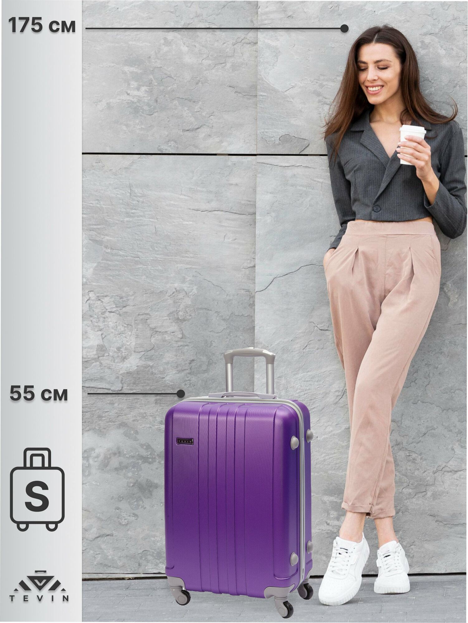Чемодан TEVIN S, ABS пластик