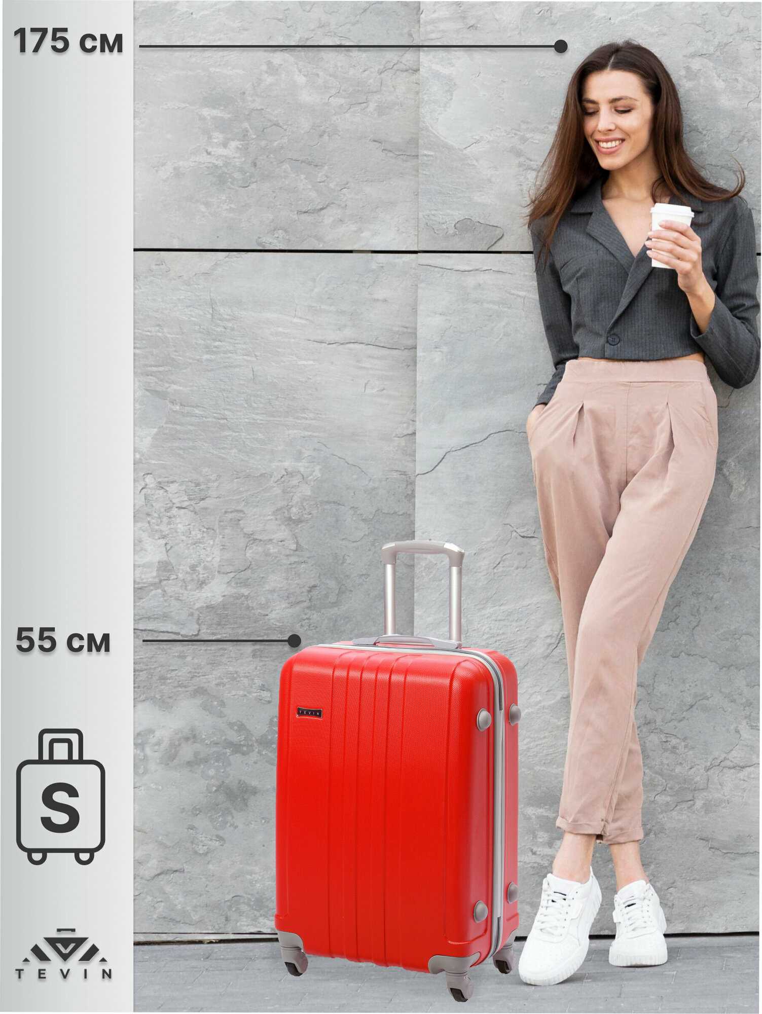 Купить Чемодан на колесах дорожный ручная кладь в самолет s TEVIN размер С компактный 55 см ручной 37 л cabin 21" легкий и прочный абс пластик Красный