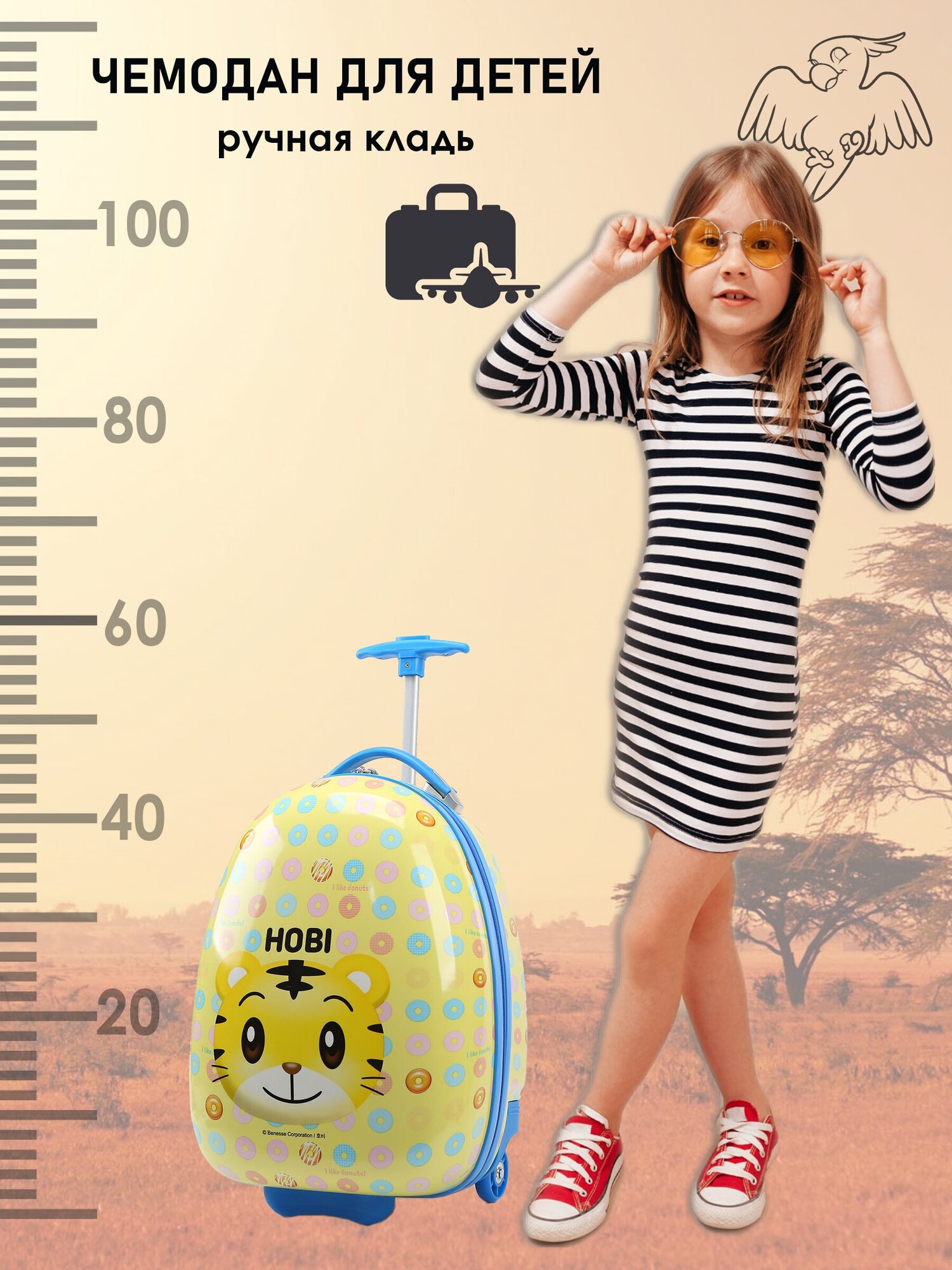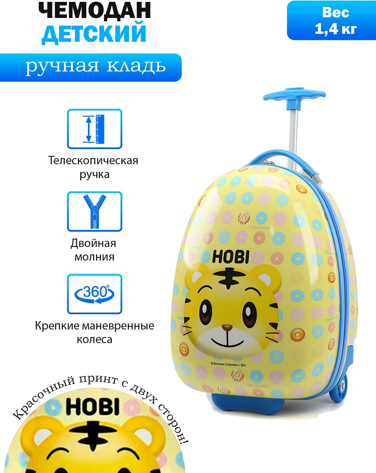 Чемодан детский дорожный на 2 колесиках, размер XS ручная кладь LATS Пончик интересное: