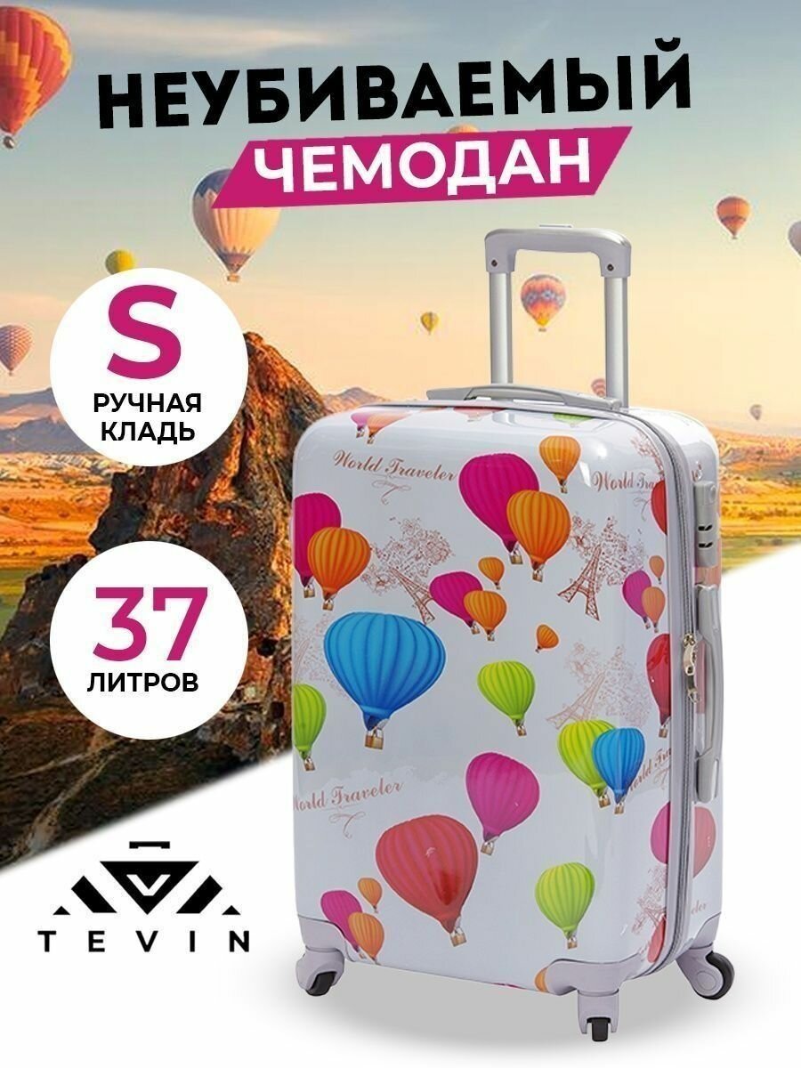 Чемодан на колесах дорожный ручная кладь в самолет s TEVIN размер С 55 см ручной 37 л cabin 21" легкий 2.5 кг прочный поликарбонат с изображением интересное: