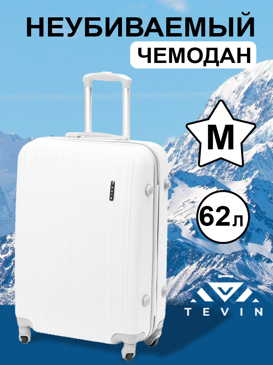 Купить Чемодан на колесах дорожный средний багаж для путешествий m TEVIN размер М 64 см 62 л легкий 3.2 кг прочный abs (абс) пластик Белый