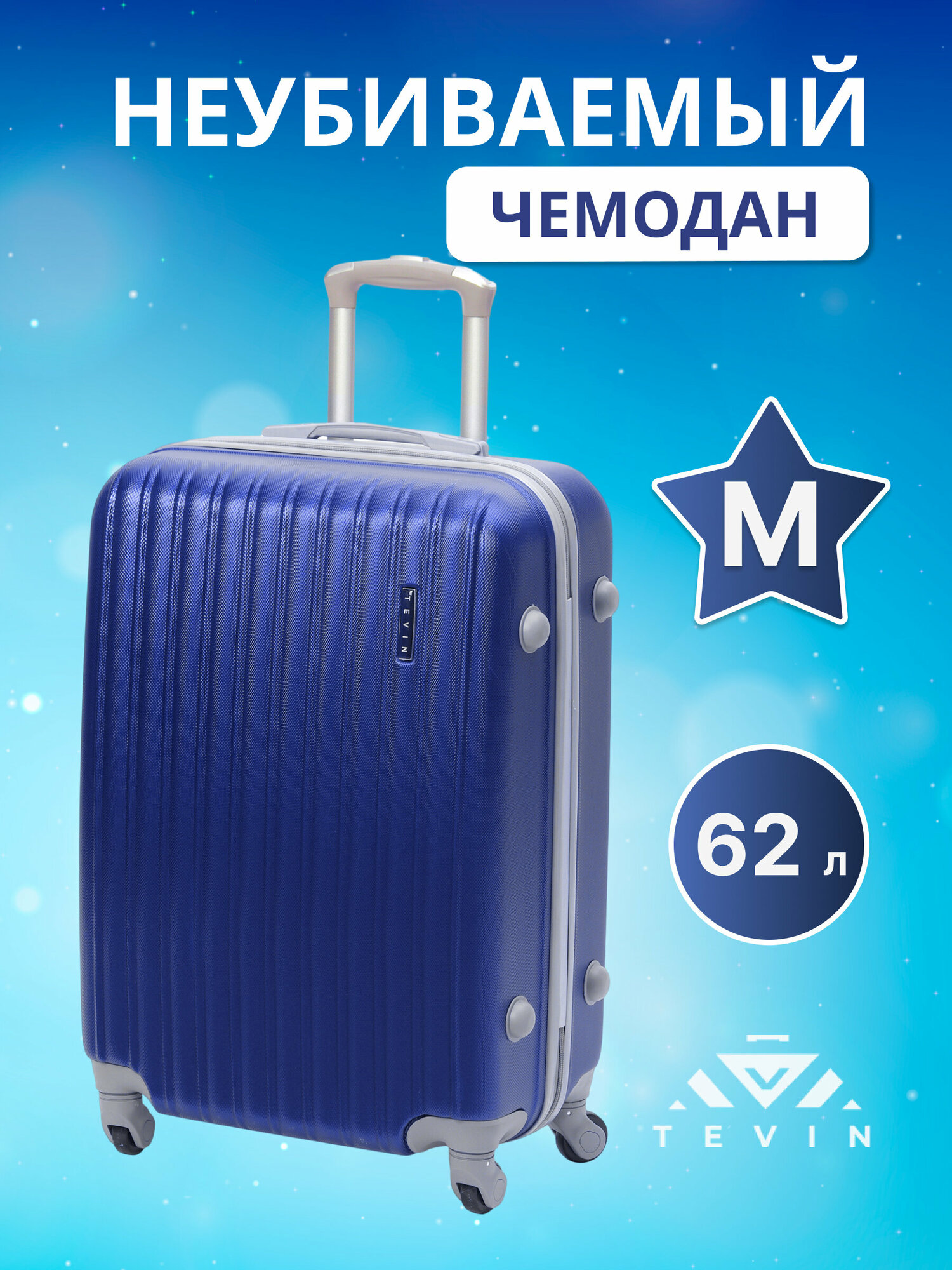 Чемодан на колесах дорожный средний багаж для путешествий мужской m TEVIN размер М 64 см 62 л легкий 3.2 кг прочный abs (абс) пластик Синий темный