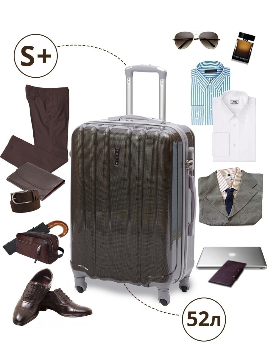 Чемодан на колесах дорожный средний багаж для путешествий s+ TEVIN размер С+ 60 см 52 л небольшой и легкий 2.6 кг прочный поликарбонат Коричневый