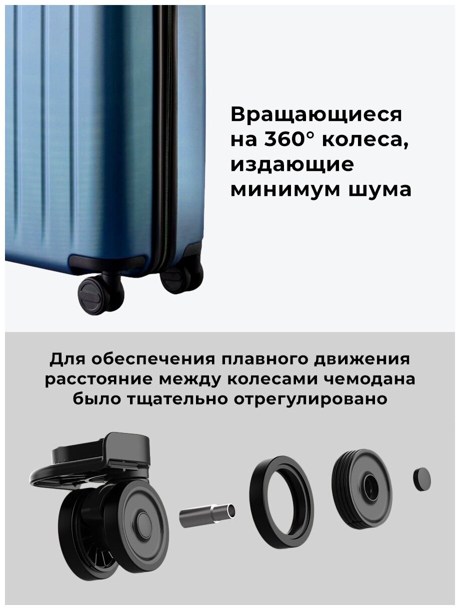 Чемодан Xiaomi NINETYGO Danube 20", серый, пластиковый, 4 колеса, блокировка замков для безопасности
