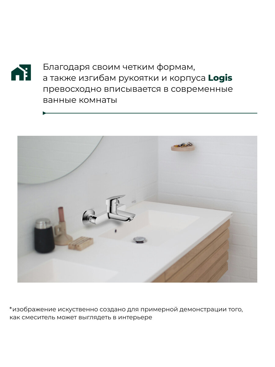 Cмеситель для раковины Hansgrohe Logis однорычажный, для настенного монтажа, хром 71225000