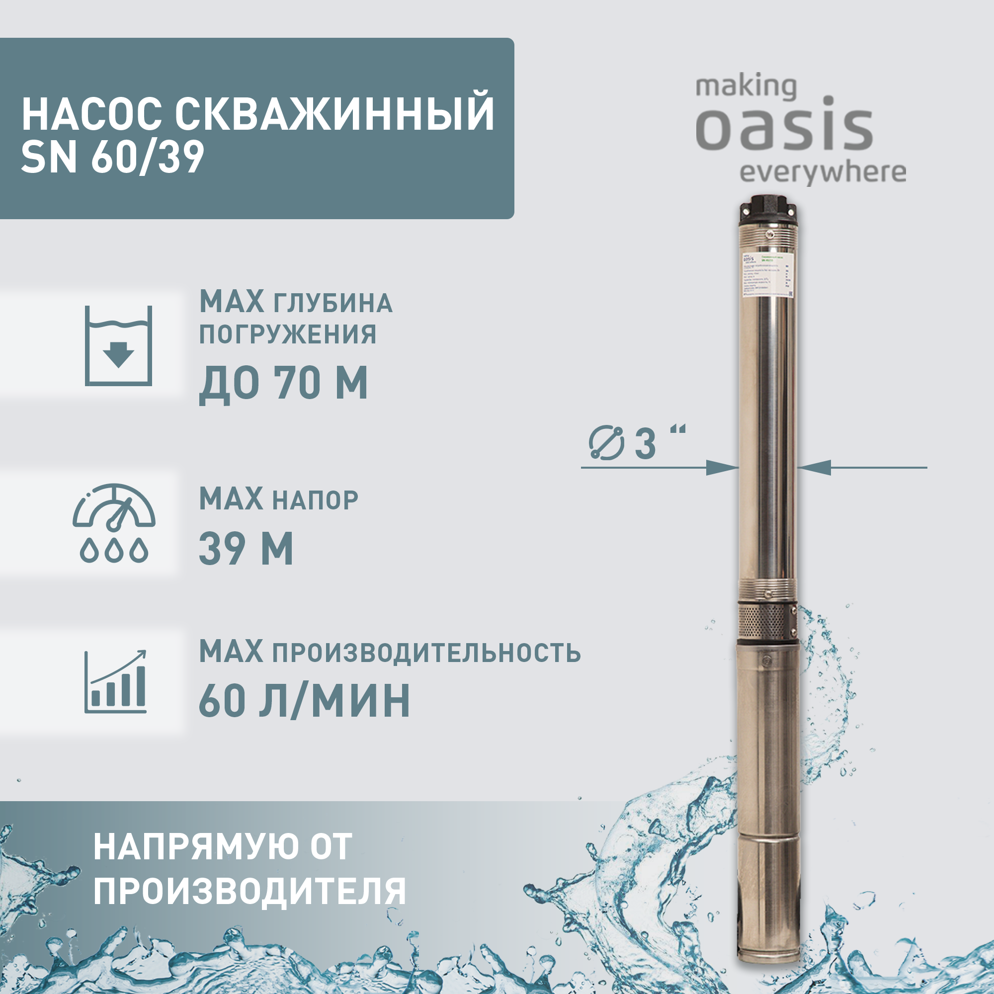 Насос погружной скважинный для воды водяной Oasis SN 60/39