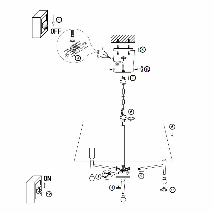 Светильник подвесной "Freya" Rosemary, FR5190PL-12BS1, 480W, E14