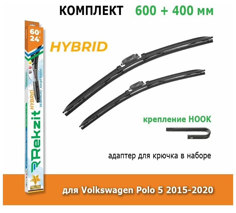 Купить Гибридные дворники Rekzit Hybrid 600 мм + 400 мм Hook для Volkswagen Polo 5 2015-2020