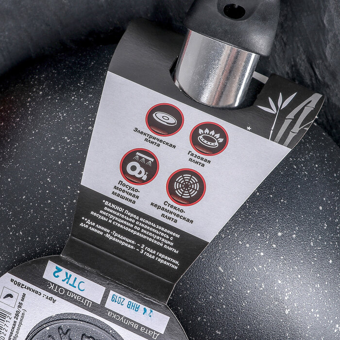 Сковорода-Wok, d=28, с ручкой, антипригарное покрытие, тёмный мрамор интересное: