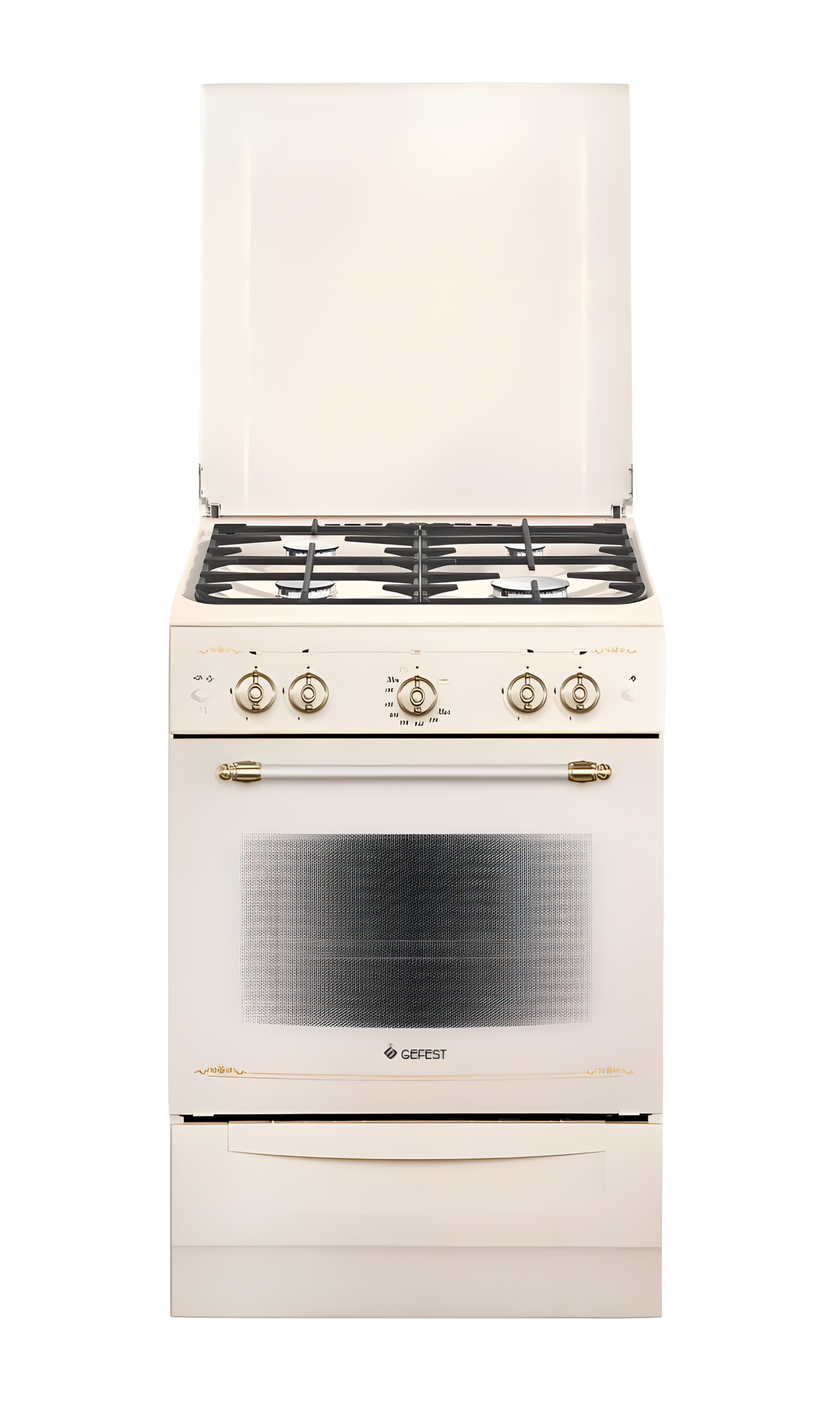 Плита GEFEST Газовая белый/золотистый (эмалированная крышка) реш.чугун