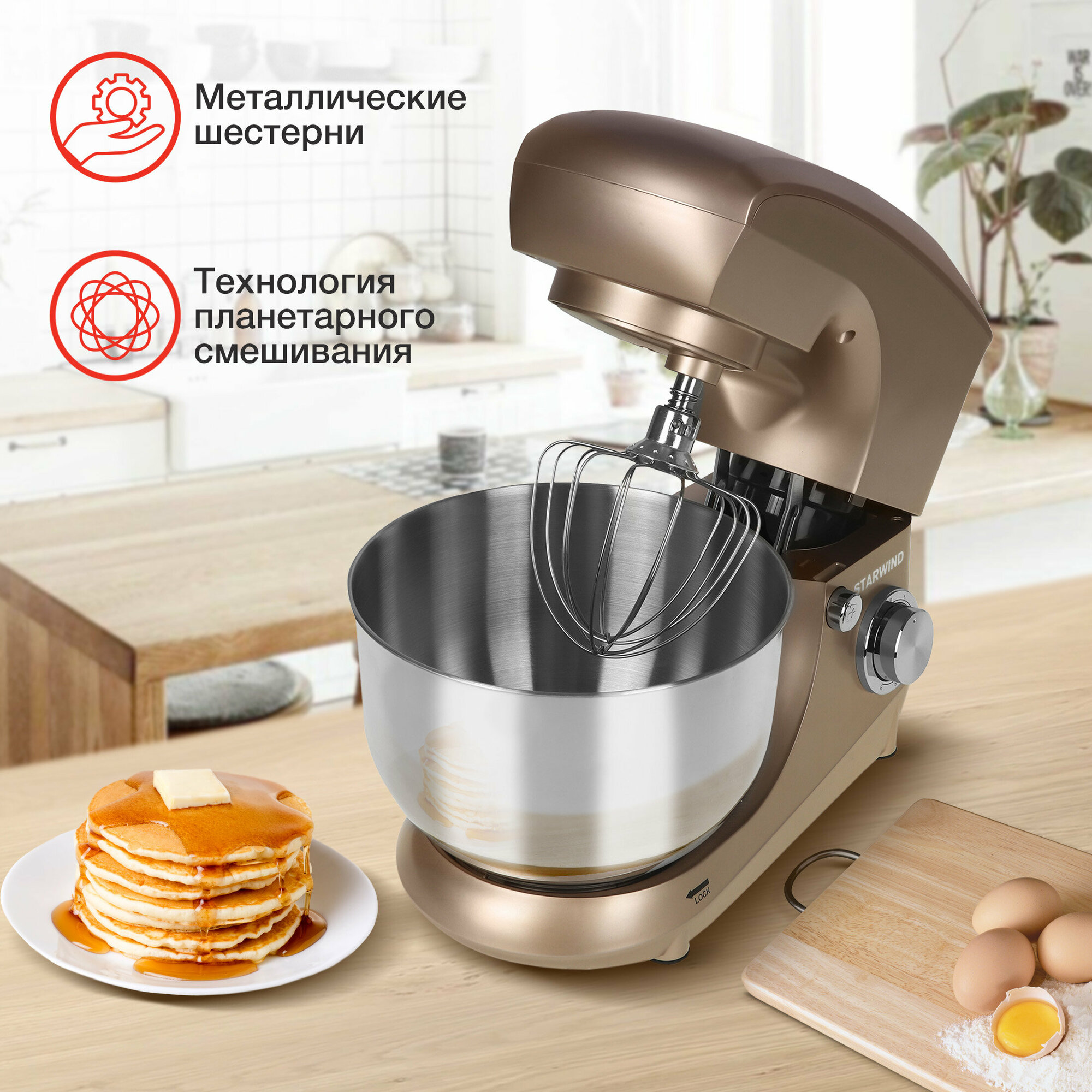 Миксер планетарный Starwind SPM5181, золотистый
