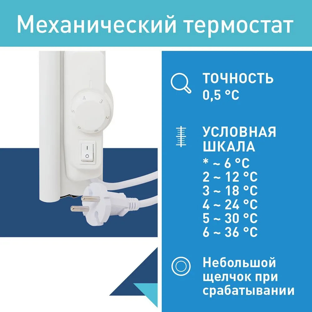 Электрический конвектор Ensto "Lammitin" EPHLM10PR 1000 Ватт с механическим термостатом и вилкой