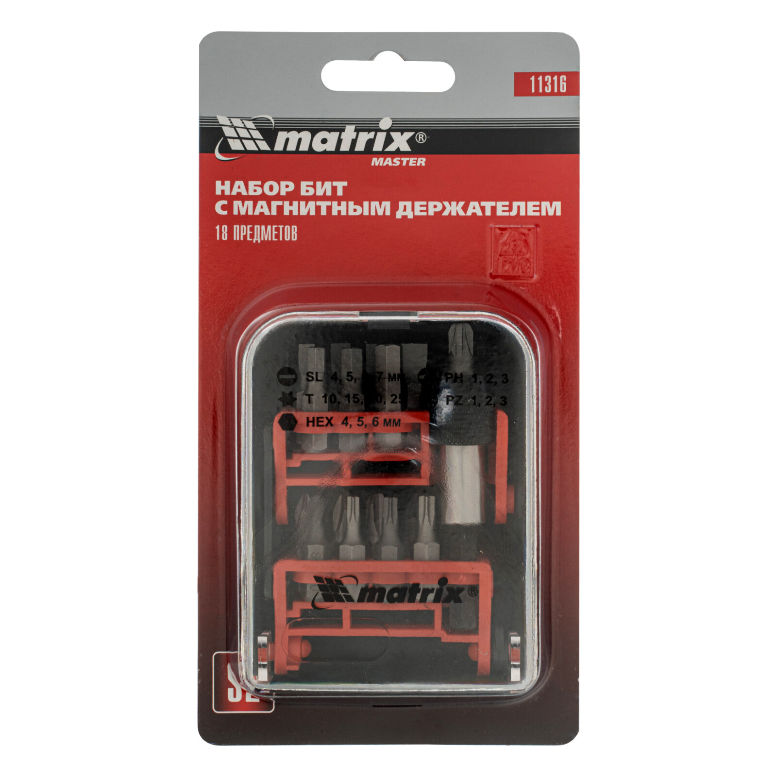 Купить Набор бит, адаптер для бит, сталь S2, 18 предм., в пласт. боксе Matrix 11316