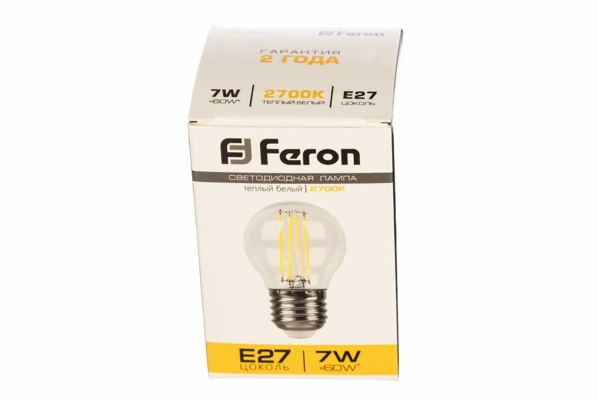 Лампа светодиодная LB-52 Шарик E27 7W 2700K, FERON 25876 (1 шт.)
