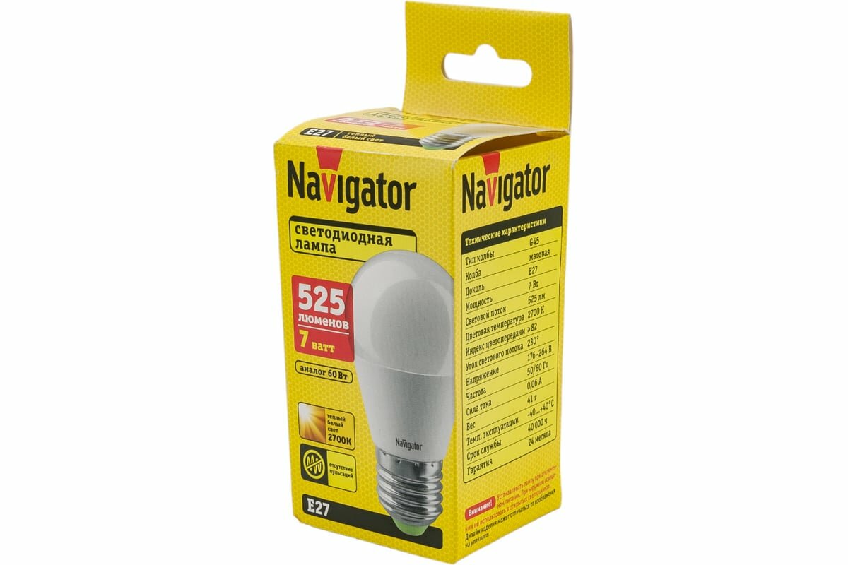 Светодиодная лампа NAVIGATOR GROUP 94 467 NLL-G45-7-230-2.7K-E27 7Вт шар 2700К тепл. бел. E27 500лм 176-264В Navigator 94467