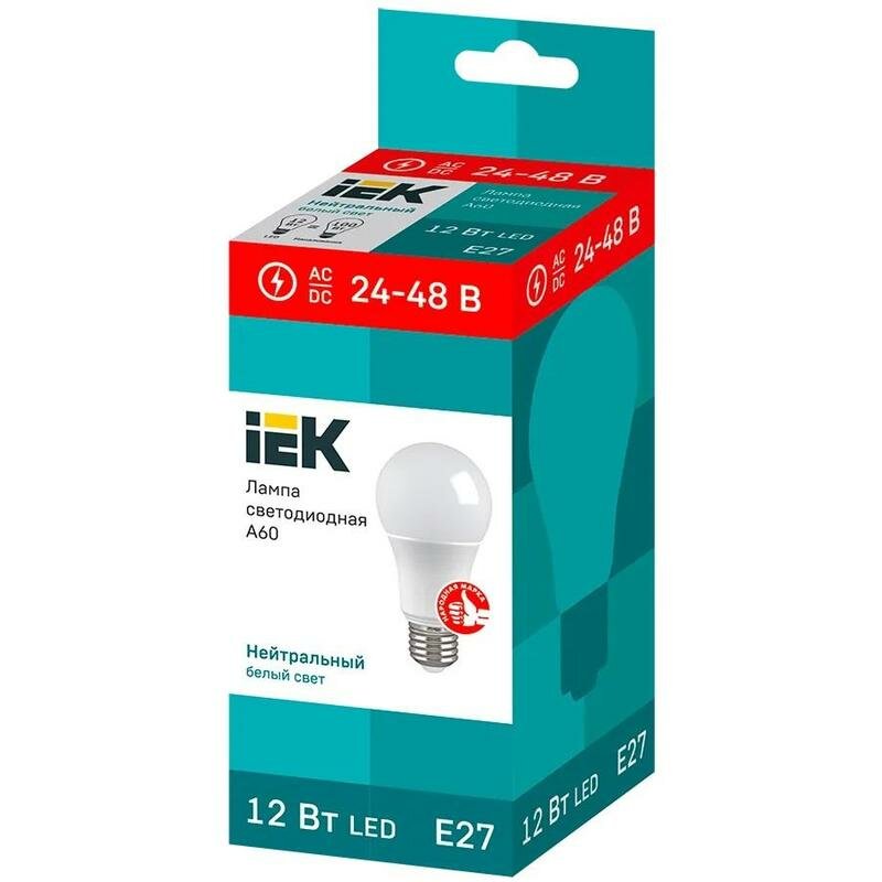 Лампа светодиодная 12Вт A60 грушевидная 4000К нейтр. бел. E27 24-48В низковольтная IEK LLE-A60-12-24-48-40-E27