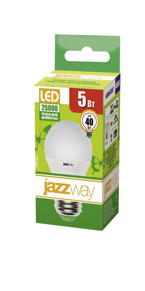 Лампа светодиодная jazzway 1036988A, E27, G45, 5 Вт, 4000 К
