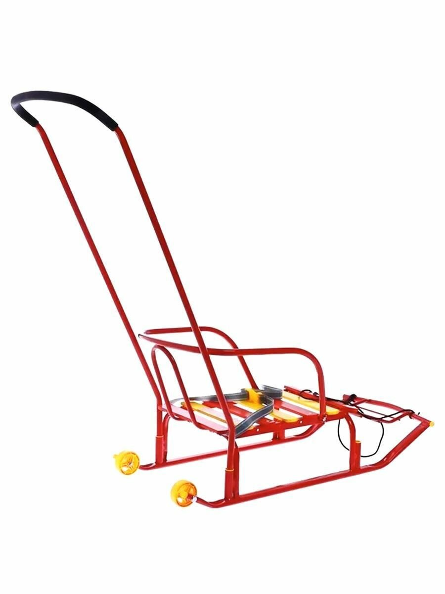 Санки детские с ручкой, колесиками и спинкой Nika "Тимка 5 комфорт+" (алый)