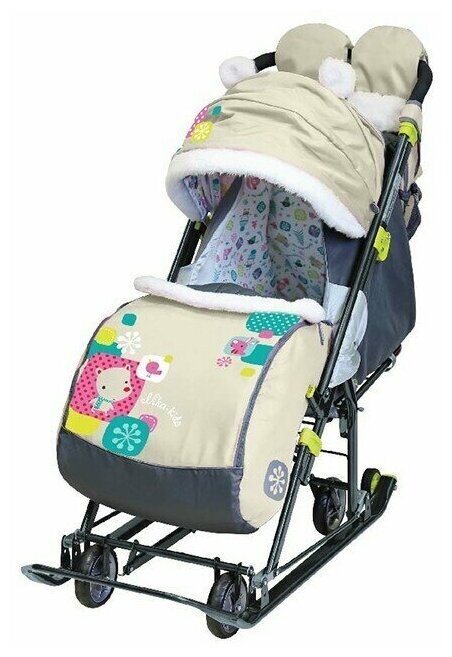 Санки-коляска Nika Ника Детям 7-6/5 с медвежонком бежевый