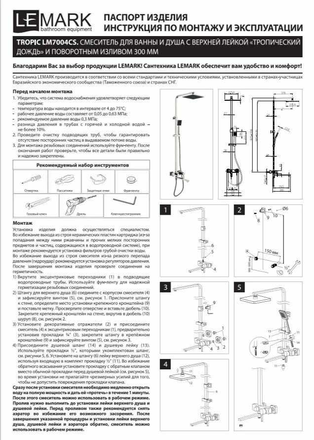 Душевой комплект Lemark Tropic LM7004СS для ванны и душа