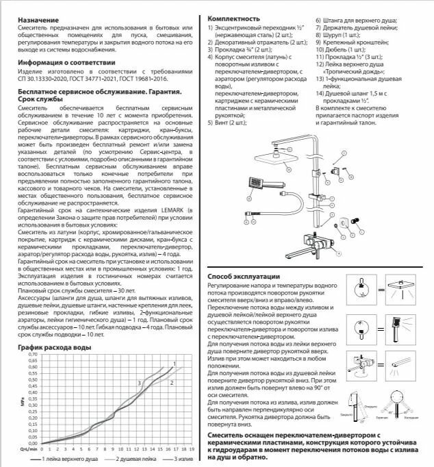 | Количество режимов лейки ручного душа | 1 |