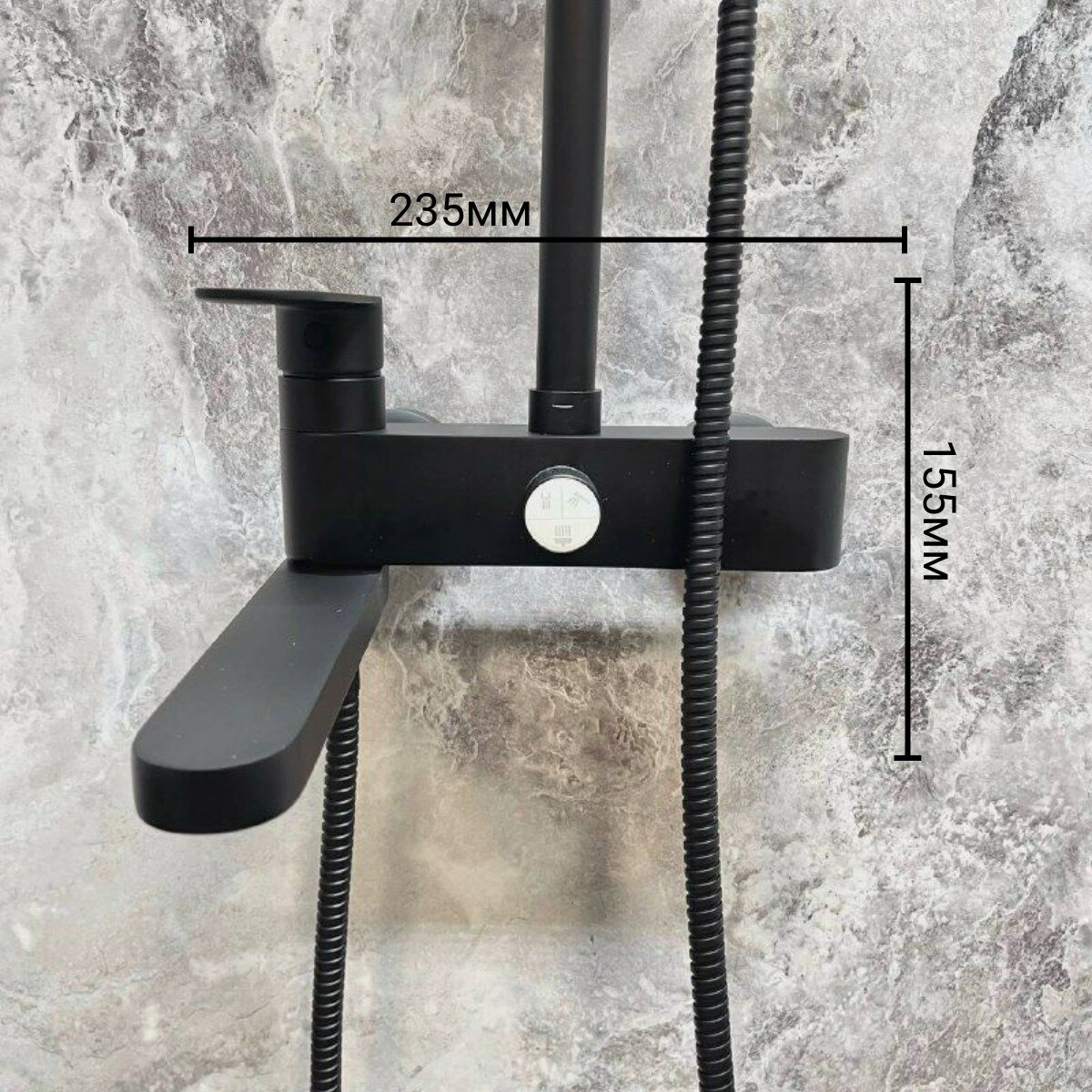 | Комплектация | душевая лейка / шланг для душа / верхний душ / кронштеин для верхнего душа / душевая стойка / Смеситель / аэратор / эксцентрики |